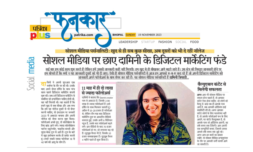 Damini Tripathi is one of India’s fastest-growing digital marketers, inspiring thousands with her journey. With 750k+ followers on Instagram and 150k+ subscribers on YouTube, she simplifies digital marketing, making it easy and accessible for everyone.